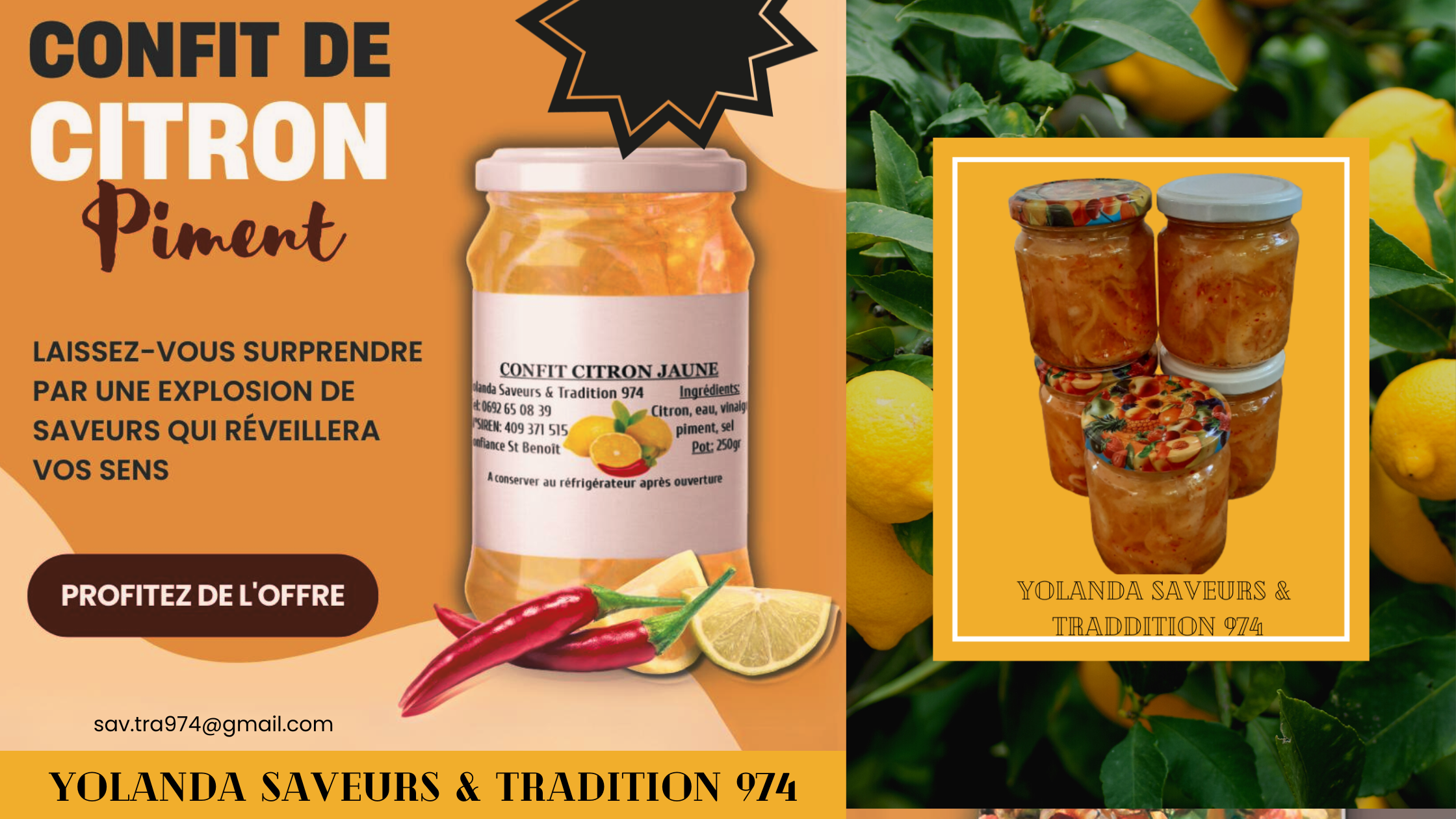 Le citron est un véritable trésor culinaire et santé. Facile à préparer, il offre de nombreuses possibilités en cuisine tout en apportant des bienfaits. Que ce soit pour assaisonner vos plats, enrichir vos recettes sucrées ou améliorer votre bien-être, le citron est un produit à découvrir et à adopter dans votre cuisine. Pour ne rien manquer de nos astuces et recettes créoles, abonnez-vous à notre blog Yolanda Saveurs & Tradition 974 et recevez chaque mois des idées nouvelles pour enrichir votre cuisine avec des produits faits maison.